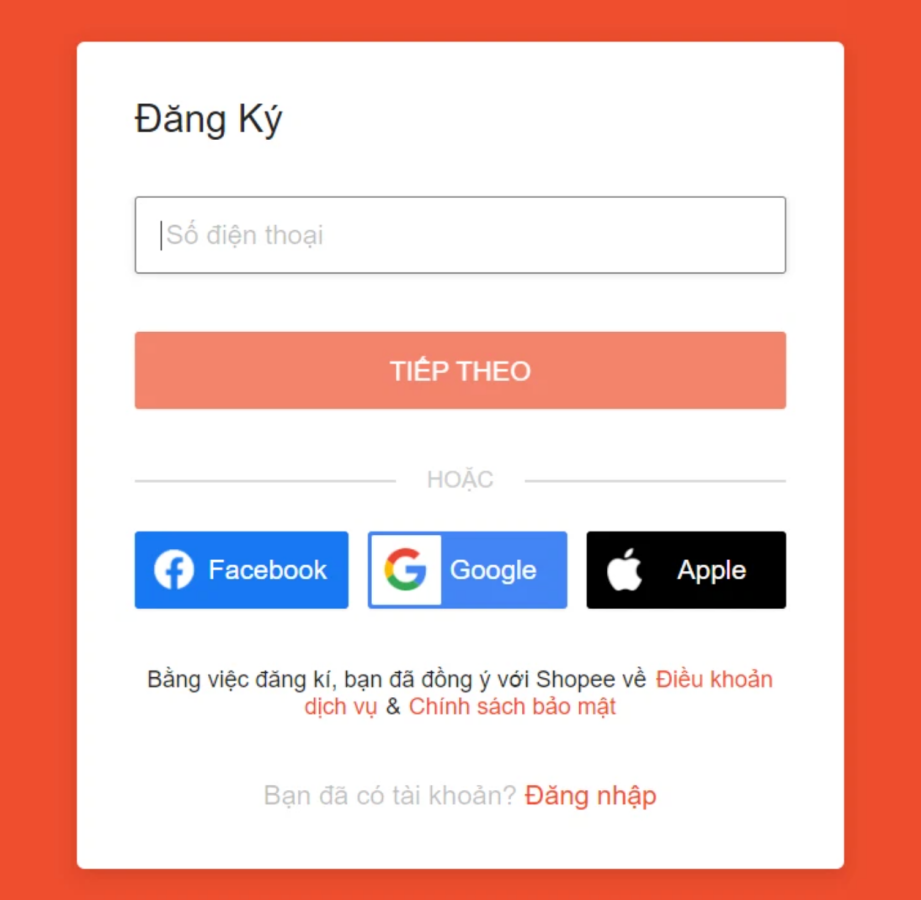 Bước 2: Sau đó, điền số điện thoại để đăng ký tài khoản Shopee