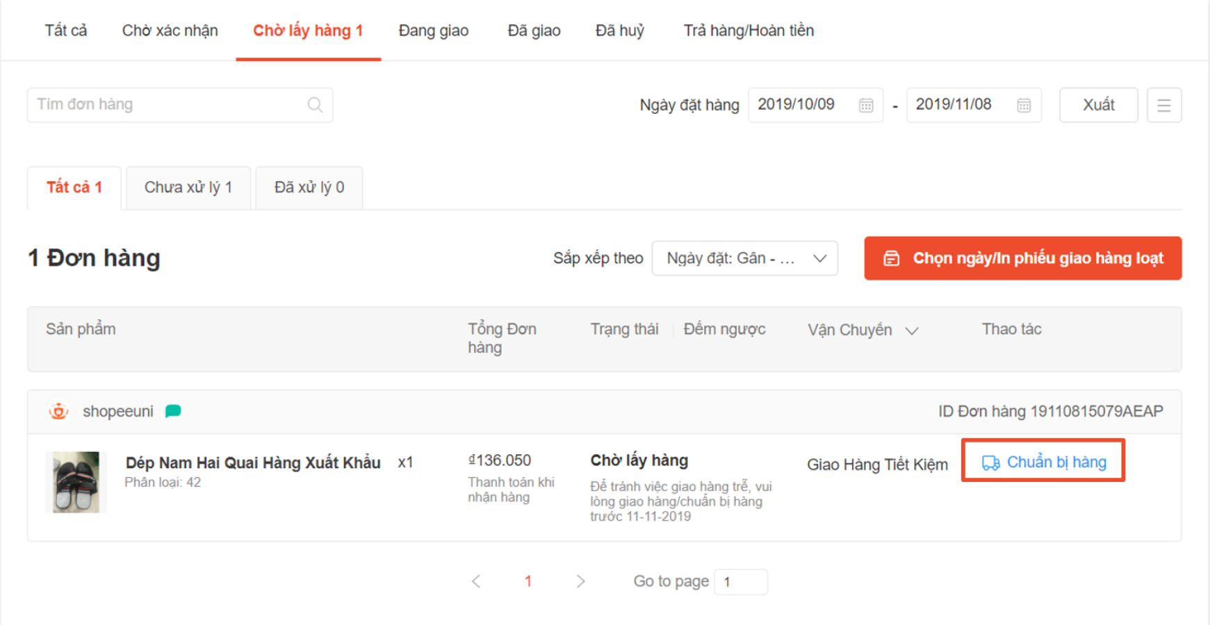 Bước 3: Rồi ấn Chuẩn bị hàng và chọn ngày hẹn bưu tá đến lấy hàng