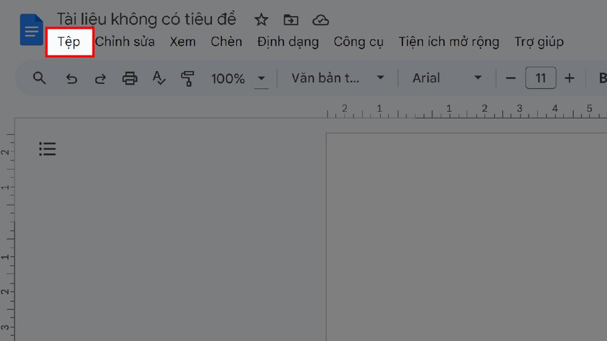 Bước 1: Đầu tiên, hãy truy cập vào trang Google Docs mà muốn chuyển thành PDF > Sau đó nhấn chọn vào mục Tệp trên thanh Menu như hình bên dưới: