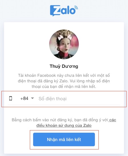 Bước 4: Trường hợp nếu Facebook và Zalo không cùng đăng ký 1 số điện thoại, hệ thóng Zalo sẽ gửi mã liên kết cho bạn.