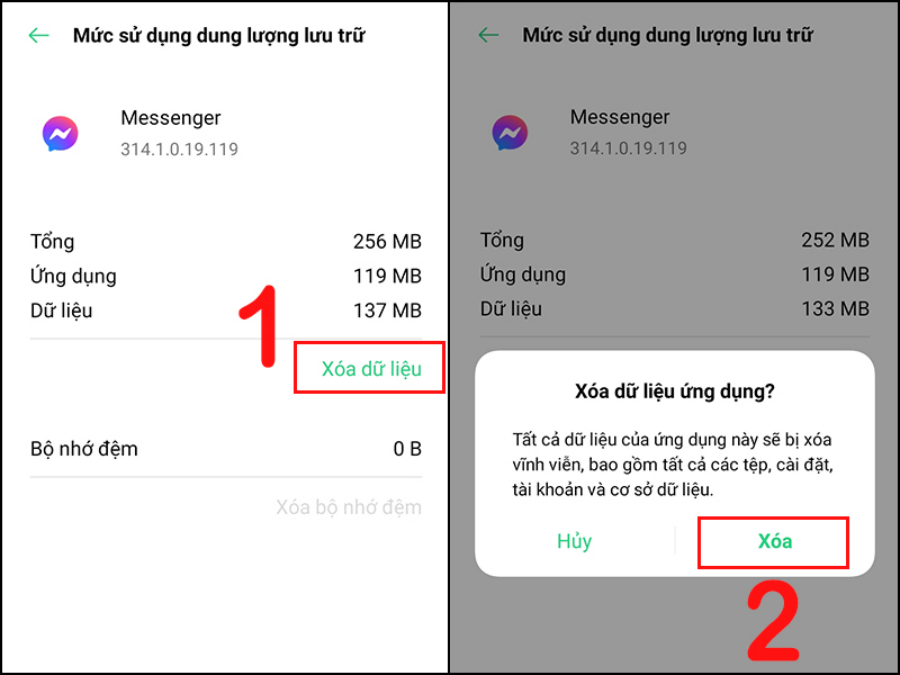 2. Nếu xóa dữ liệu trên Messenger có ảnh hưởng gì không?