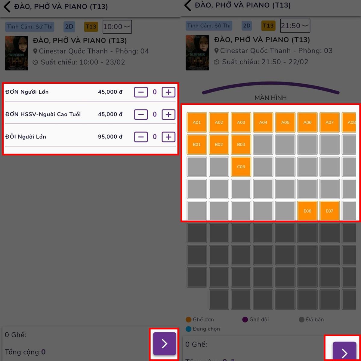 Hướng dẫn cách đặt vé phim Đào, phở và piano