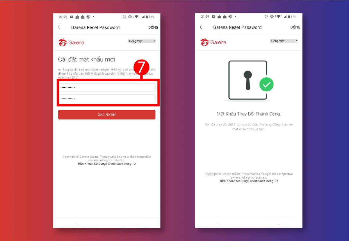 Bước 5: Cuối cùng hệ thống sẽ gửi thông báo đổi mật khẩu đến bạn, bạn chỉ cần nhập mật khẩu mới rồi ấn chọn “Xác nhận” là có thể hoàn thành các bước thay đổi mật khẩu Garena bằng Gmail