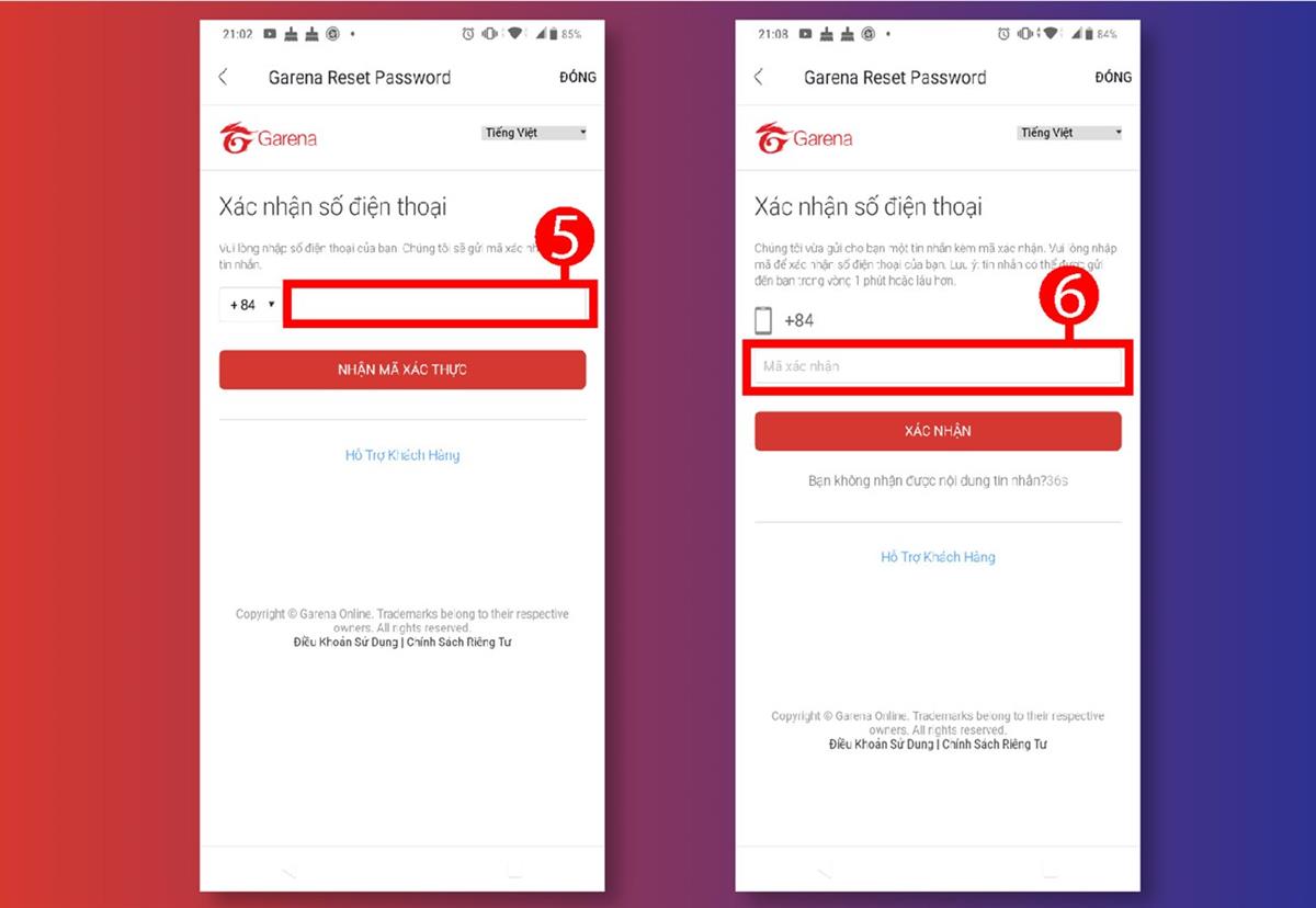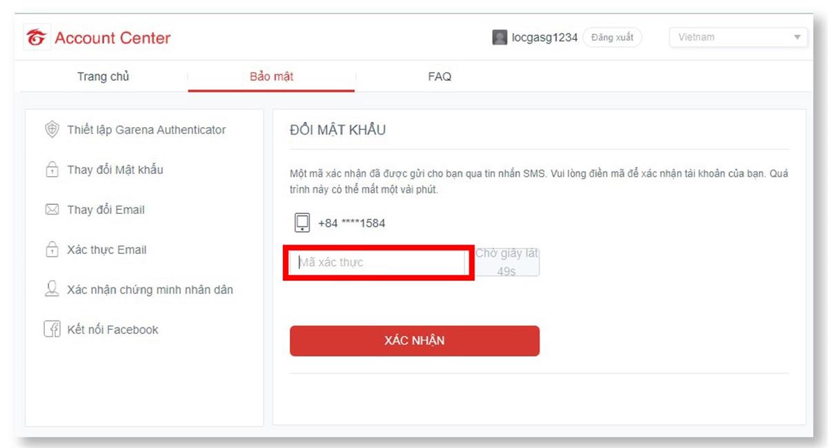 Trong quá trình đổi mật khẩu này, hệ thống sẽ tự động gửi tin nhắn mã code xác nhận tới số điện thoại bạn đã đăng ký tài khoản nhằm xác nhận chính chủ. Sau đó thực hiện theo từng bước hướng dẫn ở trên trang và cuối cùng nhập mã code vào để xác nhận đổi mật khẩu Garena là xong.