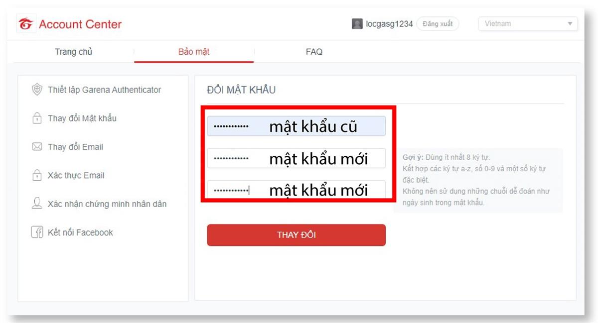 Bước 4: Nhập mật khẩu mới bạn muốn thay đổi rồi bấm nút “Thay đổi” là hoàn thành.