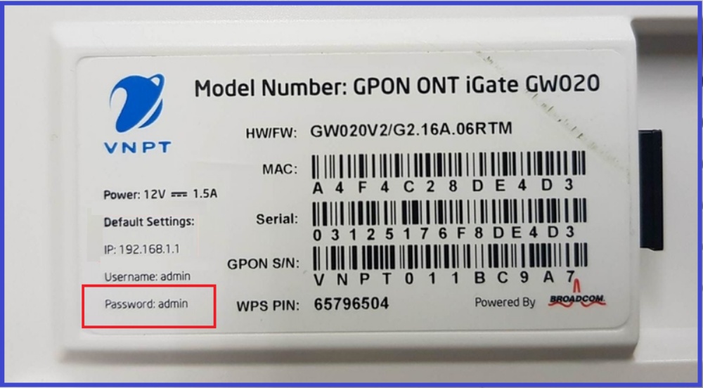 - Trường hợp 2: Nếu bạn không đăng nhập được thì bạn hãy lật modem wifi lên và lấy password ở mặt phía dưới.