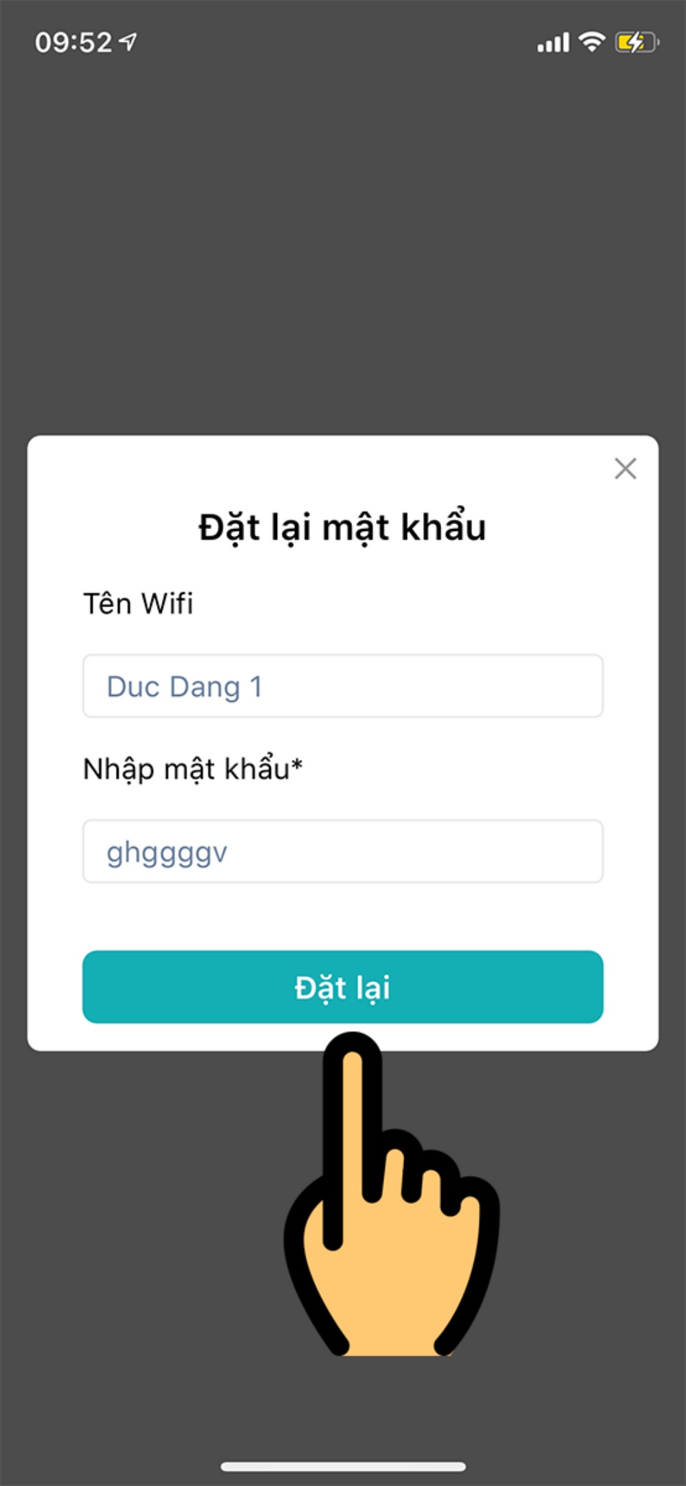 -Bước 4: Cuối cùng, nhập mật khẩu Wi-Fi mới và ấn Đặt lại là hoàn thành