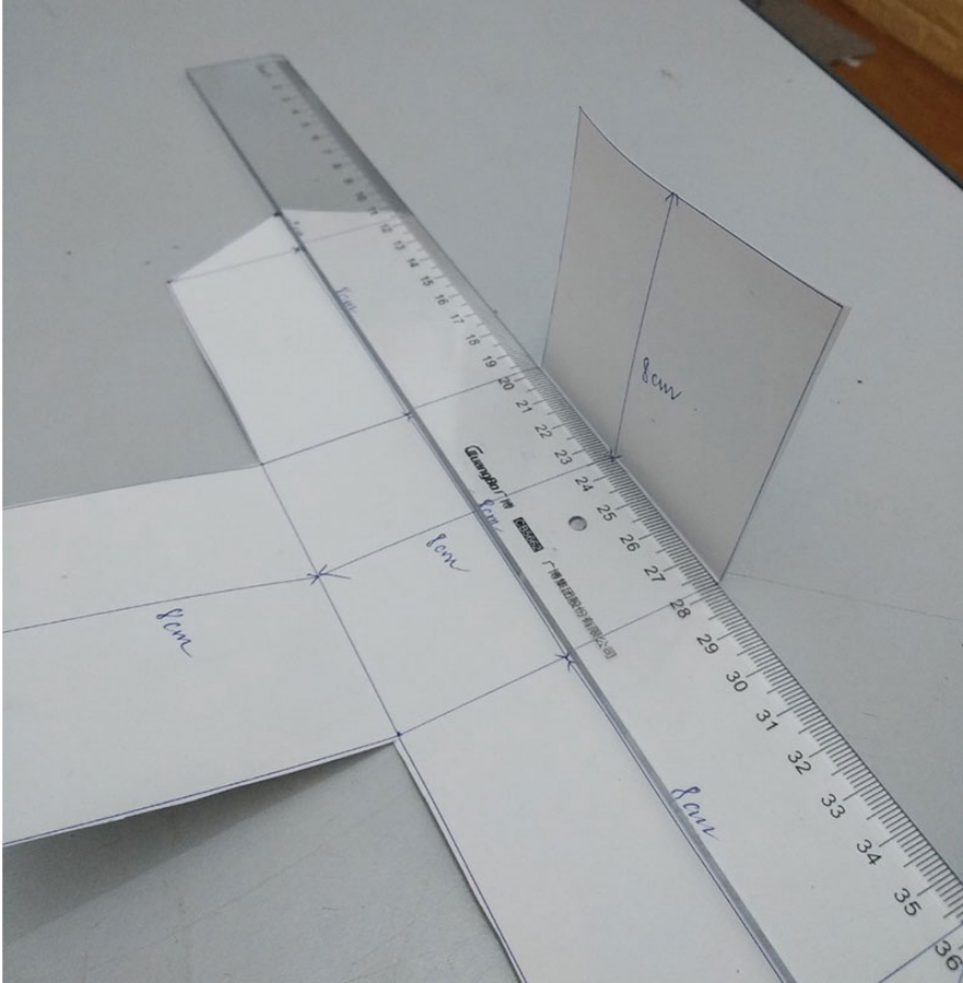 Tới đây, bạn dùng thước để căn theo các đường kẻ và gấp các mảnh đã cắt để tạo ra các đường gân tựa như hình bên dưới.