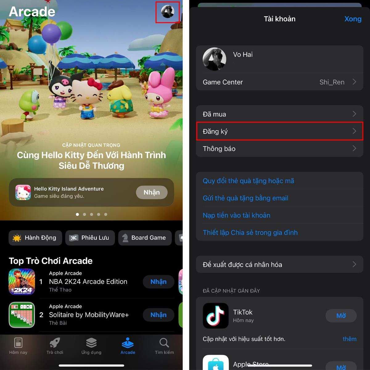 Bước 1: Đầu tiên, hãy truy cập vào ứng dụng App Store > Tiến hành chọn vào biểu tượng hồ sơ ở phía trên góc phải màn hình > Nhấn chọn Đăng ký.