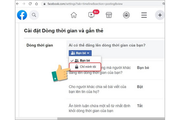 Bạn tùy chỉnh đối tượng là CHỈ MÌNH TÔI. Lúc này, không một ai có thể đăng lên tường của bạn ngoài bạn ra. Còn lại, những thông tin khác sẽ được chuyển đến mục đề xuất nội dung phê duyệt.