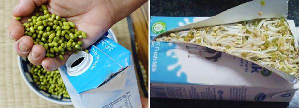 Bạn hãy tận dụng hộp sữa bỏ đi để thực hiện làm giá đỗ mà không cần phải chuẩn bị quá nhiều đồ đạc. Hơn nữa cách này còn có thể giúp giá đỗ phát triển nhanh hơn và đơn giản hơn rất nhiều.