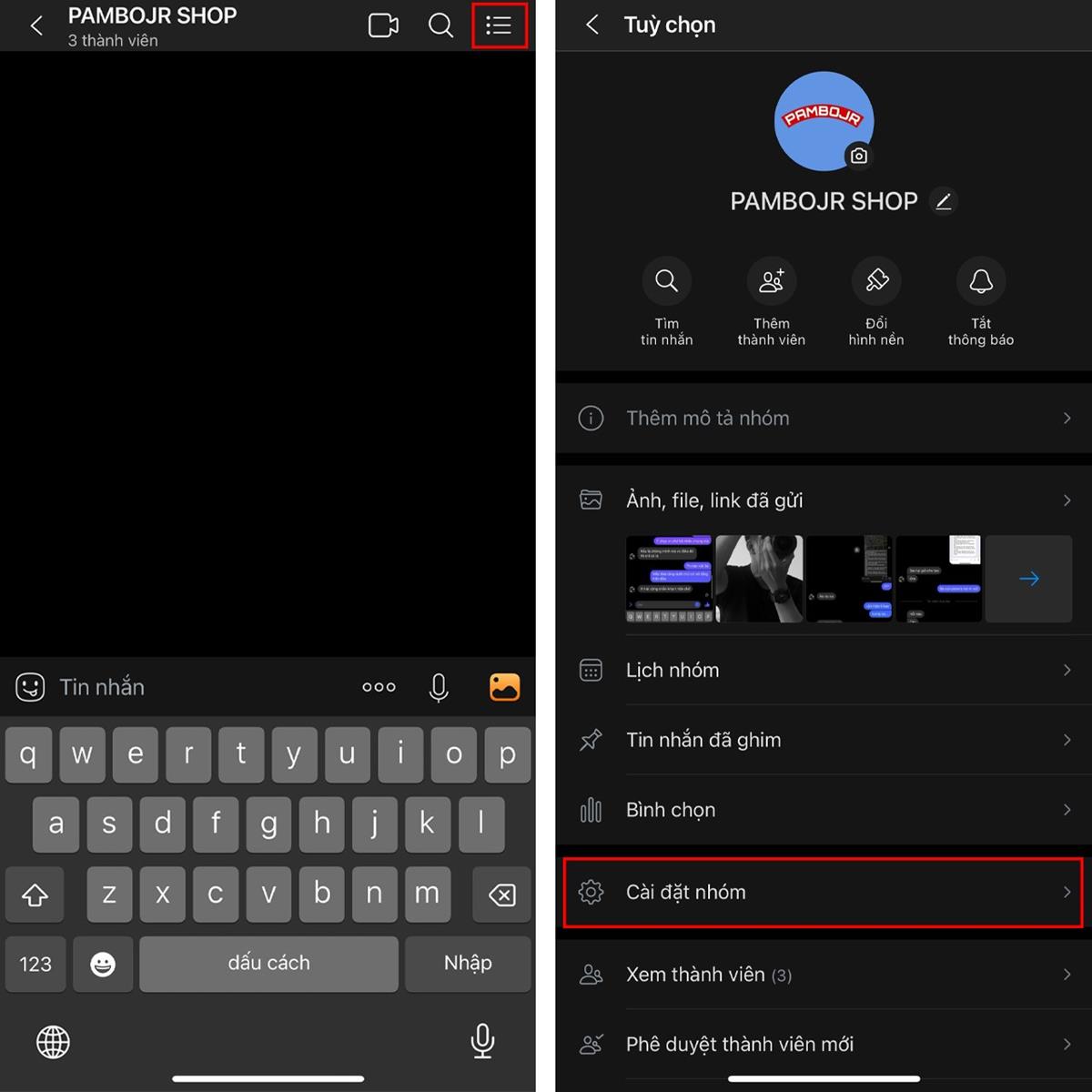 Bước 1: Đầu tiên, hãy mở ứng dụng Zalo > Chọn vào biểu tượng 3 gạch ở phía trên bên phải góc màn hình > Chọn Cài đặt nhóm.