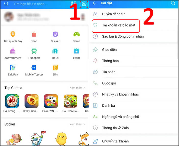 Bước 2: Tiếp tục chọn Cài đặt > Sau đó, hãy chọn Tài khoản và bảo mật.