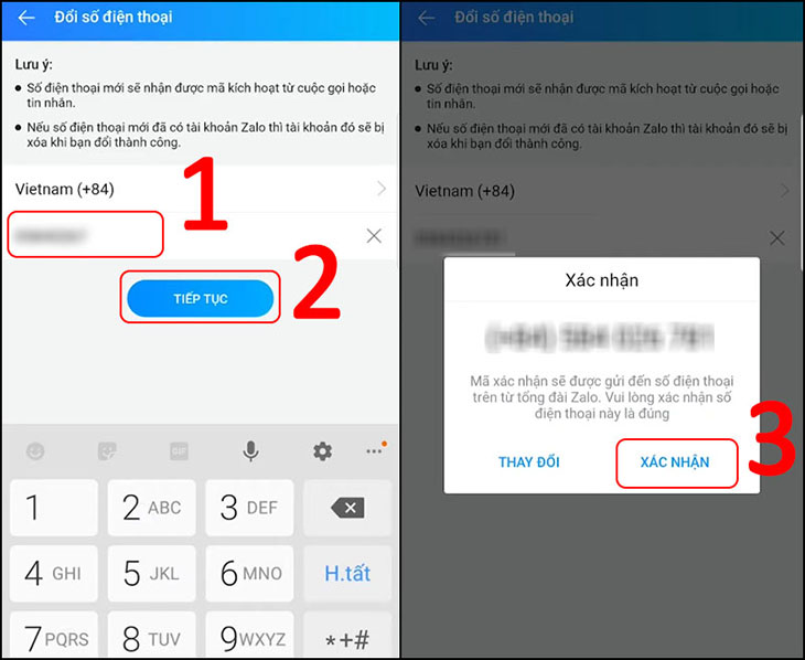 Bước 4: Hãy nhập số điện thoại mới muốn đổi > Chọn Tiếp tục > Chọn Xác nhận.