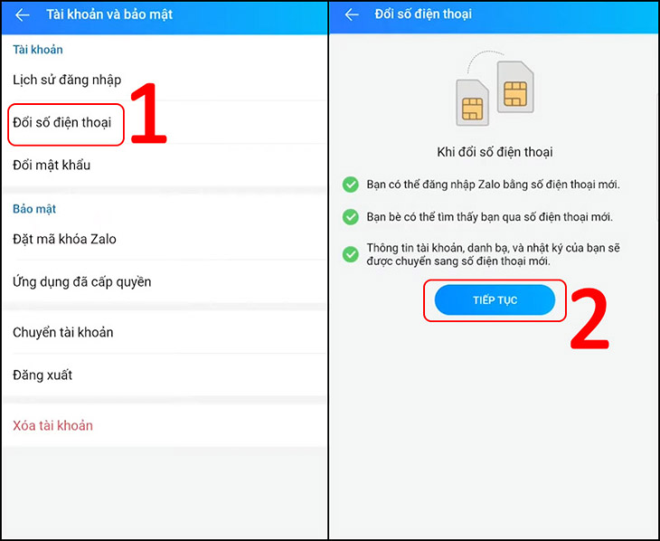 Bước 3: Chọn Đổi số điện thoại > Tiếp đó, nhấn chọn Tiếp tục.