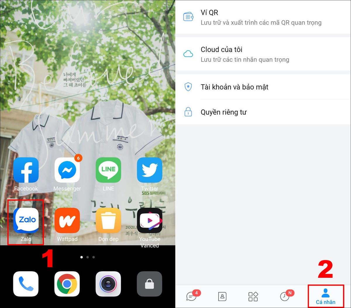 Bước 1: Đầu tiên, hãy mở ứng dụng Zalo > Chọn Cá nhân ở góc ứng dụng.