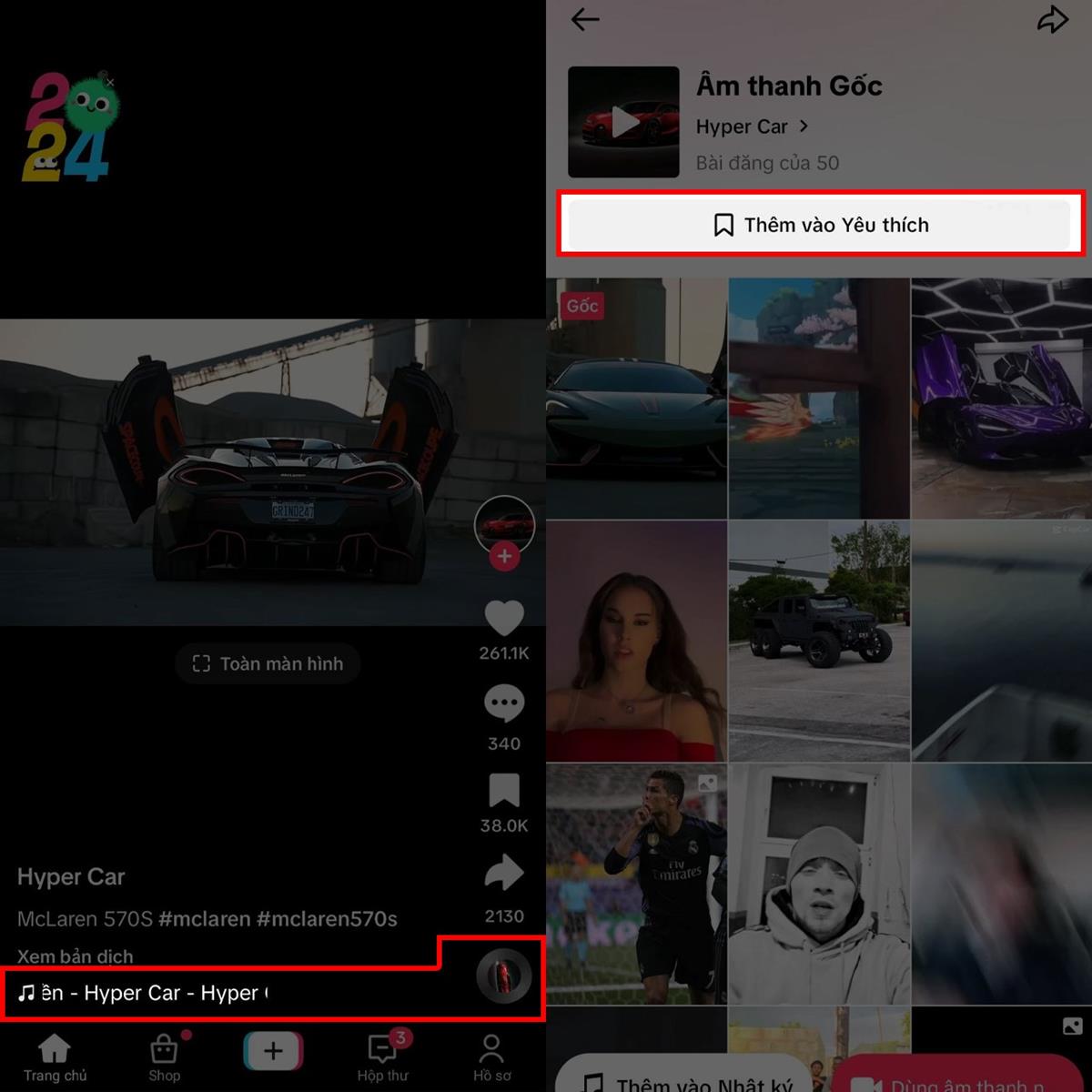 Ngay sau đó, bạn sẽ xem thêm được nhiều video hơn có sử dụng âm thanh này, nhưng thứ bạn cần chú ý đó là mục Thêm vào Yêu thích ở phía trên màn hình, ấn vào đó nha. Vậy là xong.