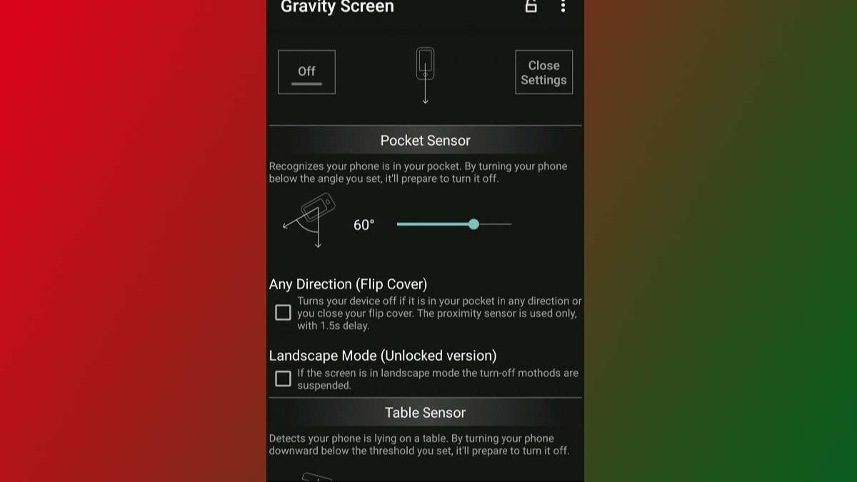 Khi bạn đã hoàn tất cài đặt, lưu lại và thoát khỏi ứng dụng. Từ giờ, khi bạn úp màn hình xuống bàn hoặc đặt điện thoại vào túi quần áo, Gravity Screen sẽ tự động tắt điện thoại mà không cần sử dụng nút Nguồn.