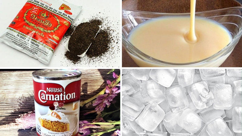 - Bước 2: Pha trà sữa thái đỏ. Kế đến, bạn cho trà vào ly cùng với 30ml sữa đặc, 30ml kem lỏng và khuấy đều. Tiến hành cho đá viên vào ly, cho trà sữa thái đỏ đã pha vào và thưởng thức.