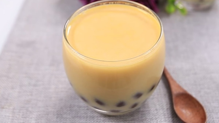 Trà sữa có màu xanh ngọc đẹp mắt, thơm mùi trà, vị béo béo, không quá ngọt. Bạn có thể chuẩn bị thêm một phần rau câu hay flan để ly trà sữa thái xanh thêm hấp dẫn.
