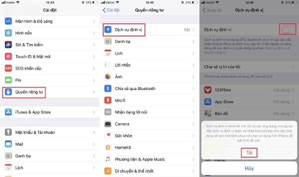 Tắt định vị trên điện thoại khi không sử dụng, điều này cũng hạn chế bị theo dõi. Chỉ nên bật tính năng này khi cần dùng, chẳng hạn để sử dụng dịch vụ giao hàng hay tra bản đồ.