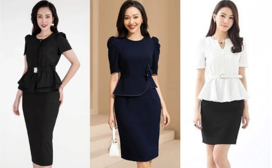 Khi kết hợp với chân váy đen ôm, áo Peplum sẽ tôn lên vẻ đẹp nữ tính và dịu dàng. Đồng thời mang lại vẻ sang trọng, phù hợp khi mặc đi làm hoặc dự tiệc. Nên chọn sự kết hợp này nếu bạn là chị em từ 30 tuổi trở lên, nhưng nếu dưới 30 thì không nên thử vì có thể sẽ không phù hợp với tuổi tác của bạn.