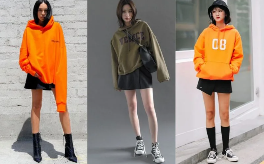Vào những ngày đông lạnh, chiếc áo hoodie không chỉ giúp bạn giữ ấm mà còn mang đến sự thoải mái. Nếu muốn tạo sự gợi cảm, bạn có thể phối chúng với chiếc chân váy đen ngắn, sự kết hợp này sẽ giúp bạn trẻ trung và quyến rũ.