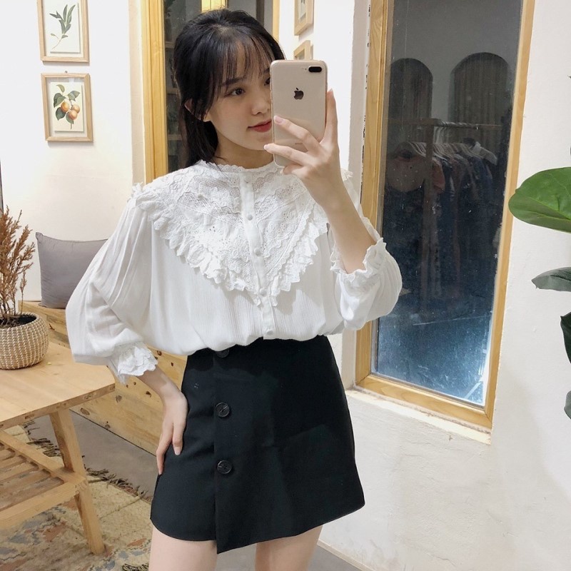 4. Phối chân váy đen xòe cùng áo voan hoặc ren