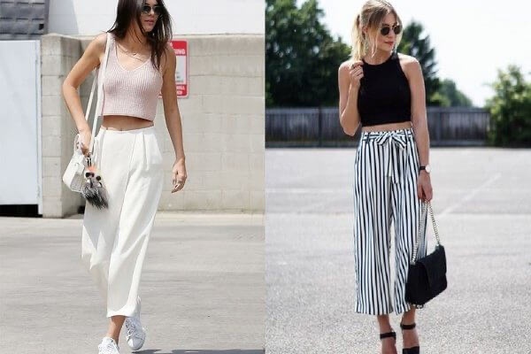 Để tôn vóc dáng, áo croptop cùng quần ống rộng là lựa chọn hoàn hảo cho những người có vòng eo nhỏ. Bộ trang phục này sẽ thu hút ánh nhìn của mọi người. Bởi khả năng khoe được vòng eo thon và làm cho chân trông dài hơn đáng kể.