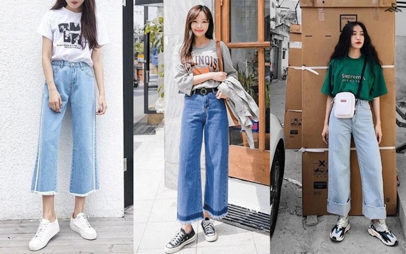 1. Phối đồ với quần ống rộng jean
