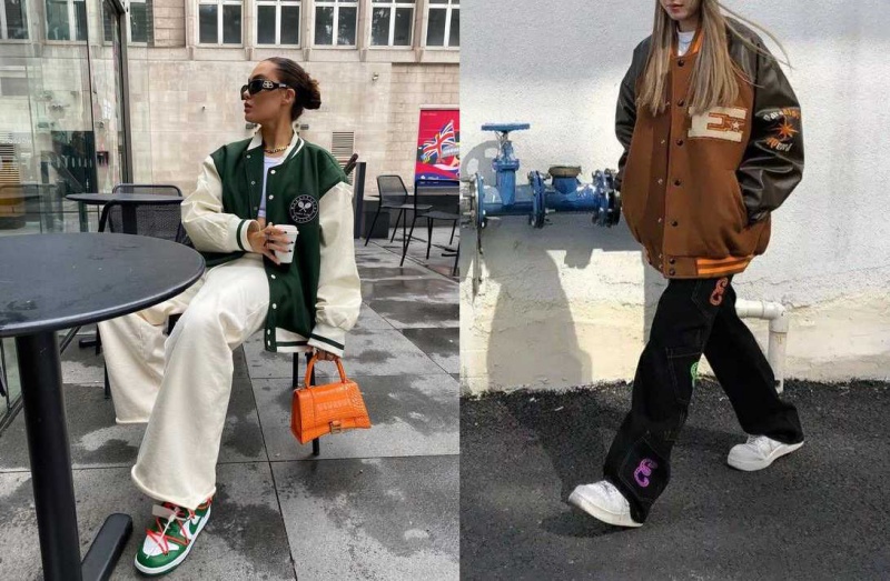Kết hợp áo khoác bomber với quần jean ống rộng và sneaker trắng, bạn sẽ có một outfit cá tính và đầy phong cách.