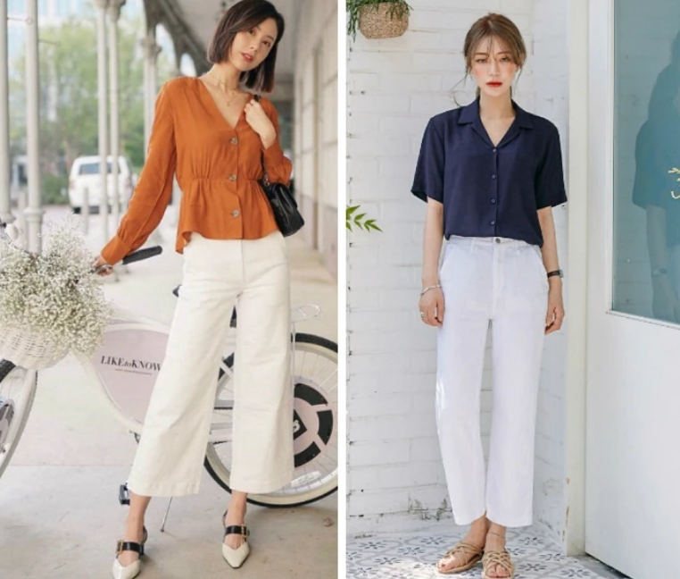 7. Phối đồ với quần ống rộng trắng