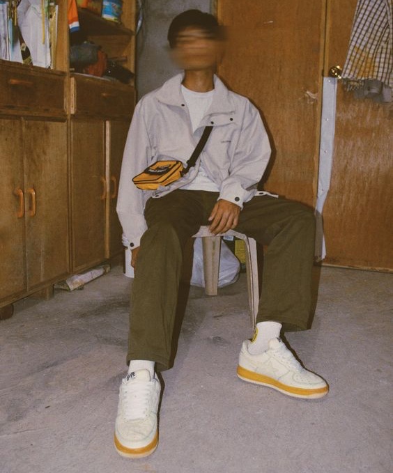 Nếu bạn là một chàng trai yêu thích sự giản dị, mộc mạc và những gam màu đất. Thì outfit với tone màu nâu, vàng, kem và xanh rêu sẽ phù hợp với bạn. Hãy nhớ kết hợp với đôi giày trắng hoặc cùng tone màu nâu và vàng để tạo sự liền mạch cho outfit.