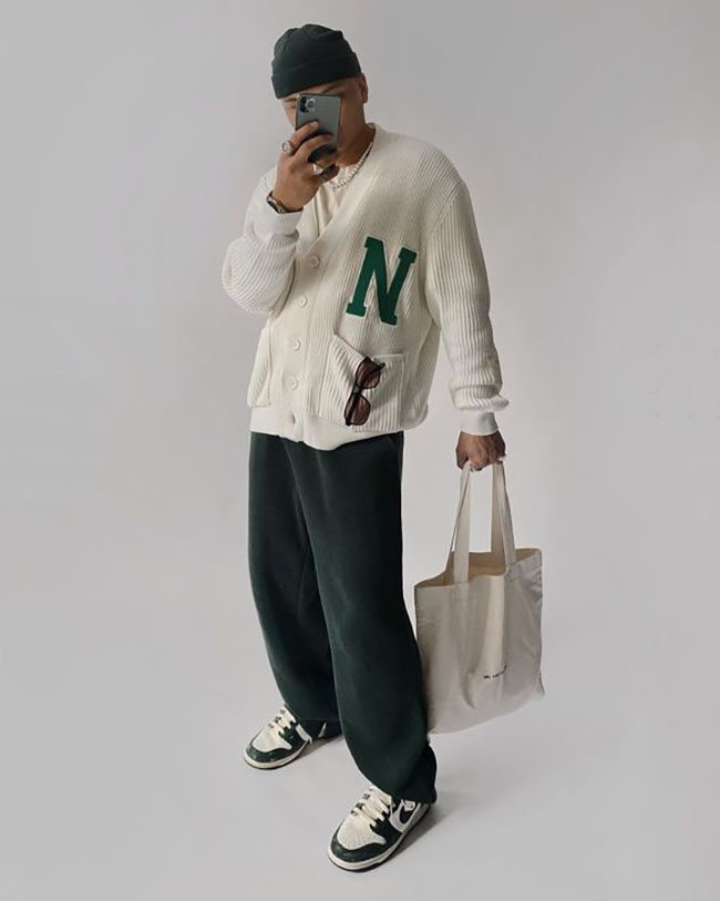 Outfit của chàng trai sẽ trở nên nhẹ nhàng và ngọt ngào hơn nếu kết hợp với áo cardigan. Đây là một lựa chọn thích hợp cho những chàng trai yêu thích phong cách "soft boy" tình cảm và ấm áp.
