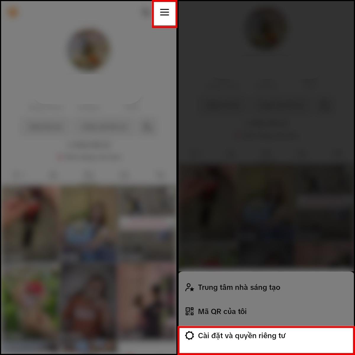 Bước 1: Mở ứng dụng TikTok > Truy cập vào Hồ sơ của bạn bằng cách nhấn chọn mục Hồ sơ ở góc phải dưới màn hình > Chọn vào biểu tưởng ba dấu gạch ngang ở phía trên bên phải cạnh ảnh đại diện > Chọn Cài đặt và quyền riêng tư trong mục tùy chọn được hiển thị.