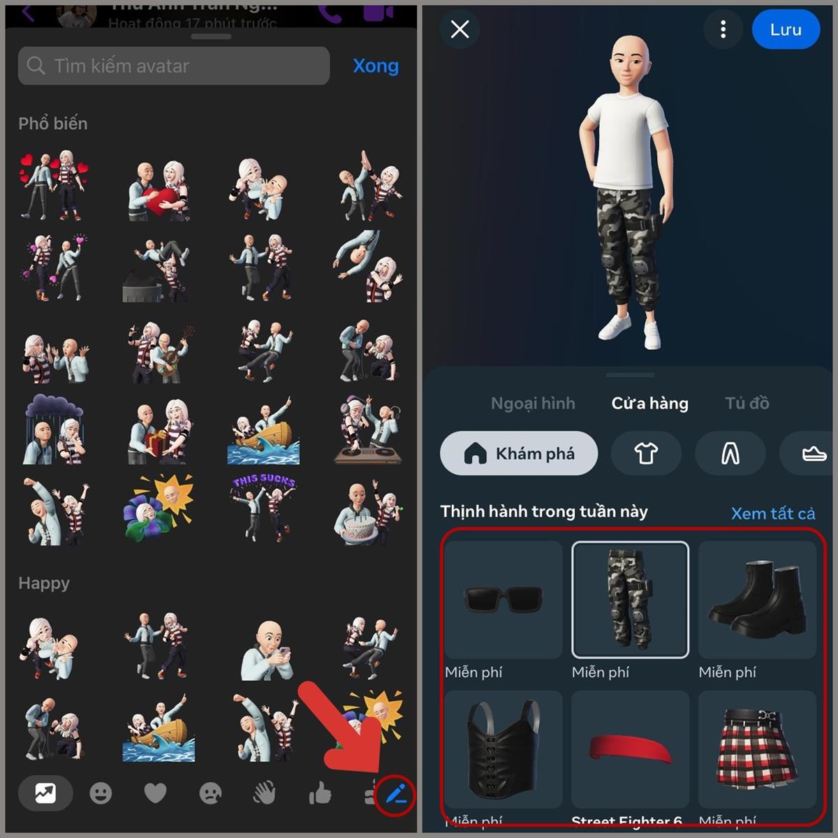 Bước 5: Để chỉnh sửa lại avatar này, bạn hãy chọn biểu tượng cây bút > Sau đó, chọn lại các trang phục có trong cửa hàng.