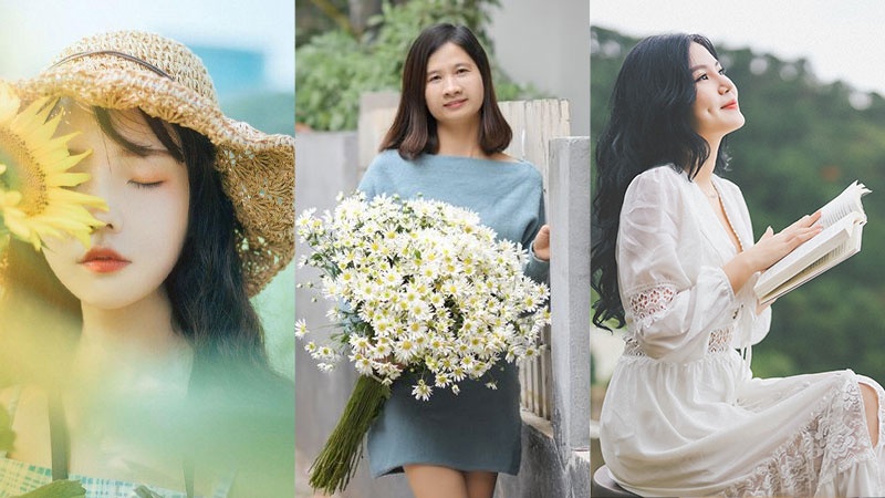 Theo đó, tùy thuộc vào khung cảnh, phụ kiện chuẩn bị mà bạn có thể tạo những dáng như: Ôm bó hoa dịu dàng, lấy lá che nắng, lấy hoa che mắt, chụp góc nghiêng thần thánh của mình, tạo dáng với sách, dáng ngồi năng động,...