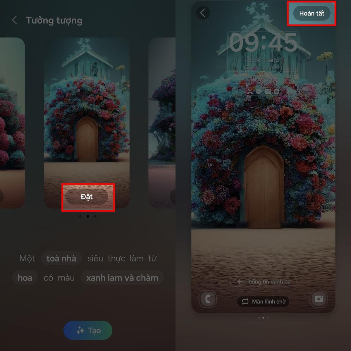 Nếu đã có kết quả ưng ý với mình thì hãy ấn ngay vào nút Đặt > Hoàn tất để đặt nó làm hình nền cho điện thoại của mình là hoàn thành.