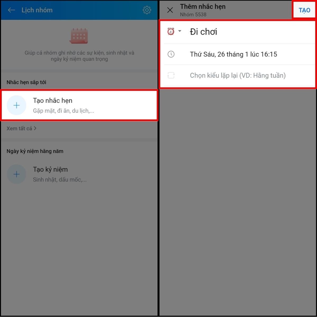Cách tạo lịch nhắc hẹn Zalo trong nhóm