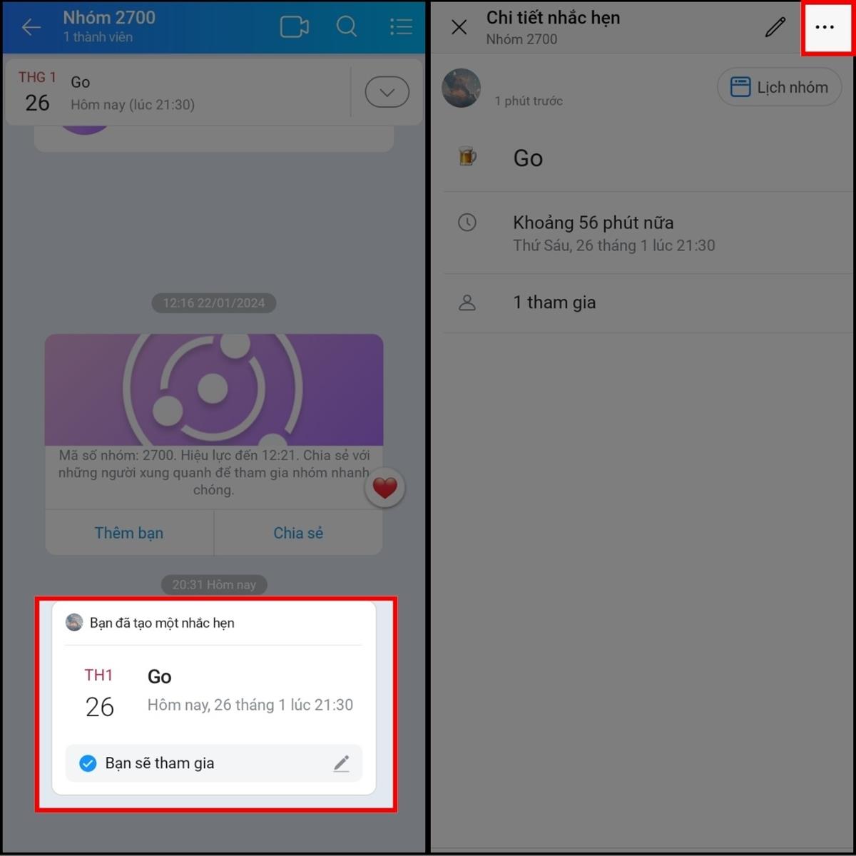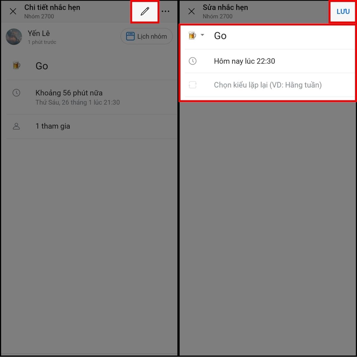 Chẳng may đặt lịch nhắc hẹn với bạn bè trong nhóm, nhưng lại bị sai thông tin về thời gian. Dưới đây là cách hướng dẫn sửa lịch hẹn: