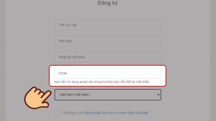 Bước 6: Tiếp theo, click chọn Tôi đồng ý với Điều Khoản Dịch Vụ và Chính Sách Bảo Mật.