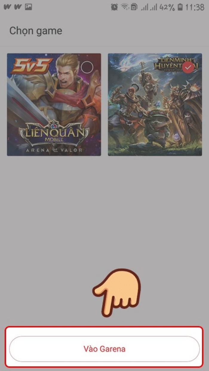 Bước 1: Đầu tiên, bạn vào Garena trên điện thoại -> Ấn chọn 1 trong số các game được liệt kê bên dưới -> Bấm Vào Garena.