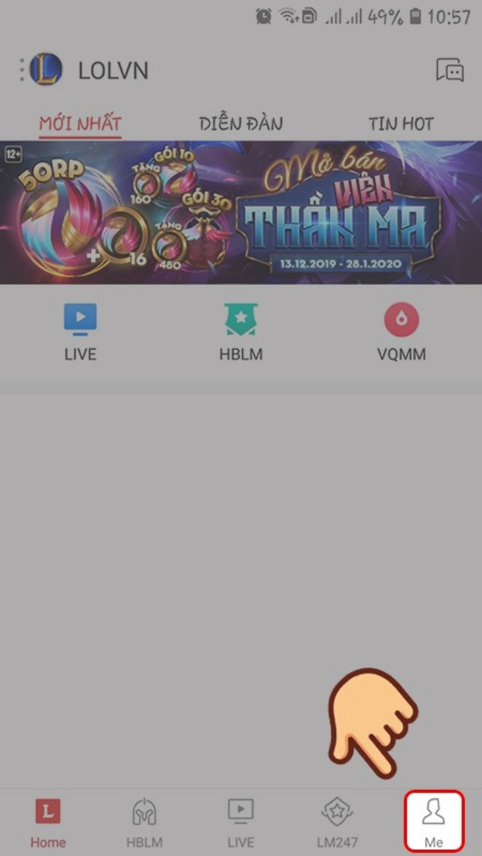 Trên giao diện của ứng dụng Garena, nhấn chọn Me