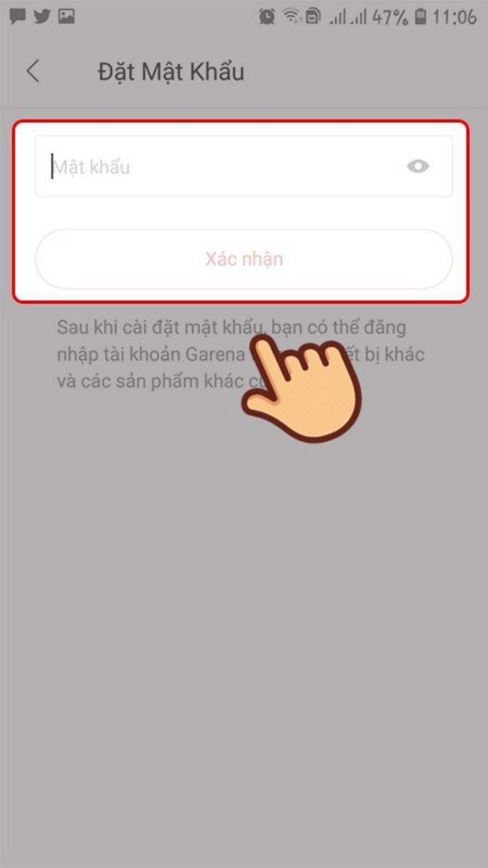 Bước 7: Tới đây, Garena sẽ cho bạn đặt lại mật khẩu mới với 1 dòng duy nhất, hãy gõ cẩn thận rồi ấn xác nhận để hoàn tất.