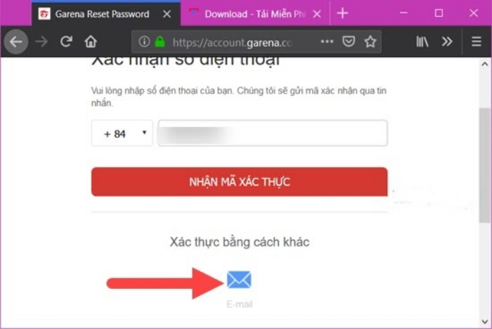 Bước 3: Tiếp theo, bạn xác nhận số điện thoại, nếu không nhớ hãy bấm xác thực bằng cách khác điển hình là Email.