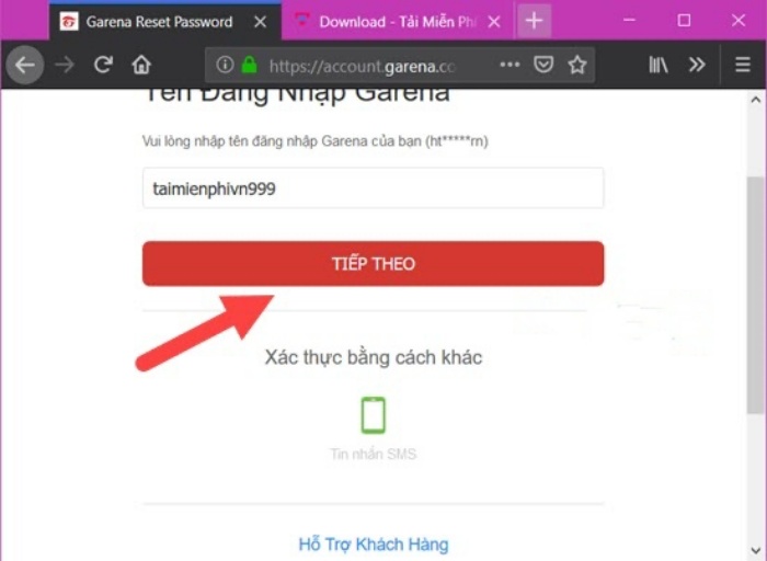 Bước 4: Bạn tiếp tục điền chính xác tên tài khoản đăng nhập của mình vào để có thể lấy lại pass Garena. Lưu ý là tên tài khoản đăng nhập chứ không phải Email, nếu bạn gõ Email vào sẽ báo sai.