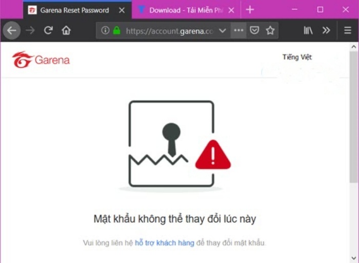 TH1: Nếu hệ thống thông báo mật khẩu không thể thay đổi lúc này -> Tức là tài khoản của bạn có vấn đề hoặc chưa đủ điều kiện như xác nhận tài khoản, số điện thoại hay Email trước đó. Chính vì thế, bạn nên liên hệ với bên hỗ trợ khách hàng của Garena.