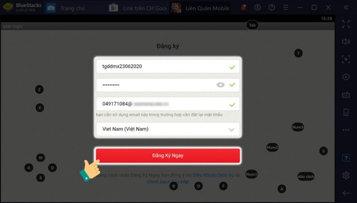 Bước 2: Tiếp theo, điền thông tin tài khoản -> Bấm Đăng Ký ngay.