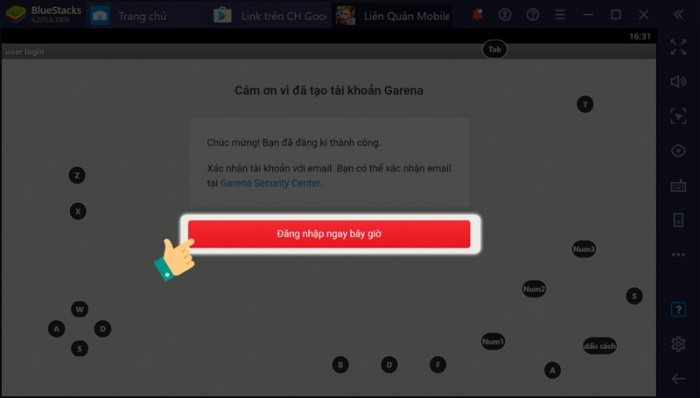 Bước 6: Rồi tiến hành điền thông tin tài khoản bạn vừa đăng kí -> Ấn Đăng Nhập Ngay.