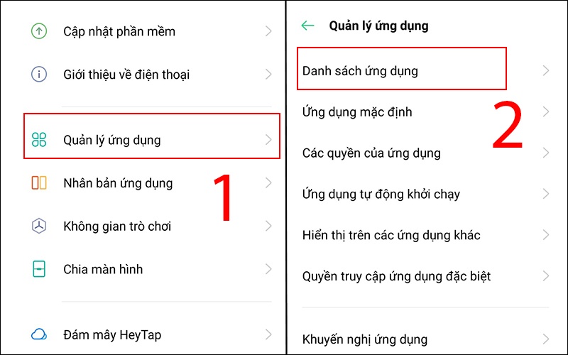 Bước 1: Trước tiên, bạn vào Cài đặt -> Nhấn chọn Quản lý ứng dụng -> Bấm vào Danh sách ứng dụng.